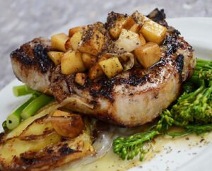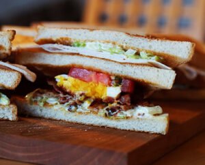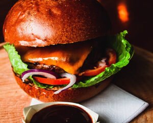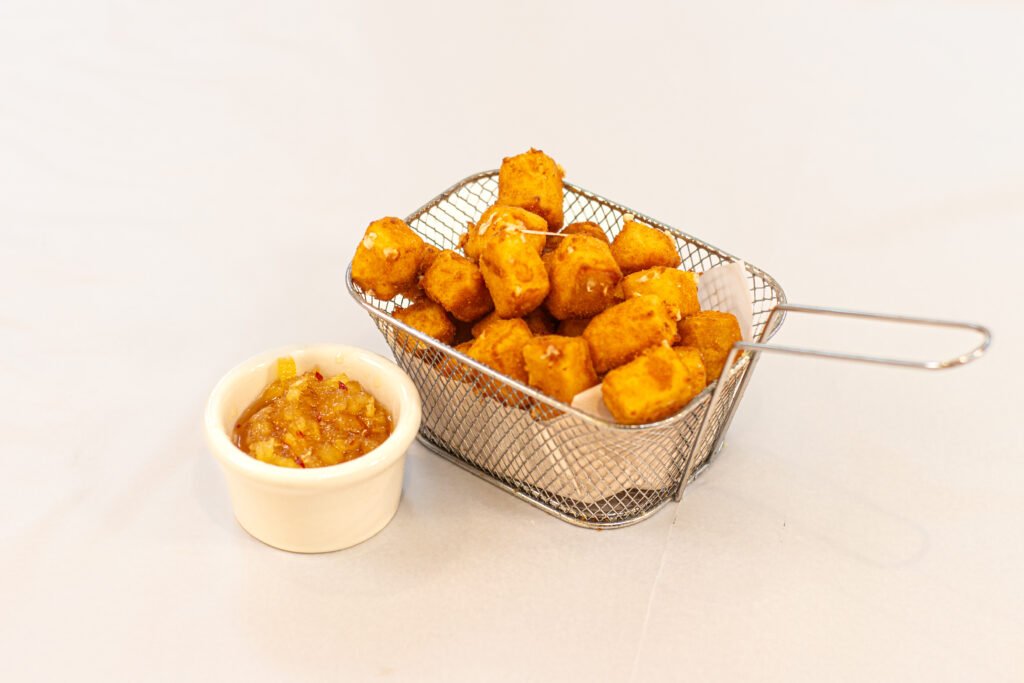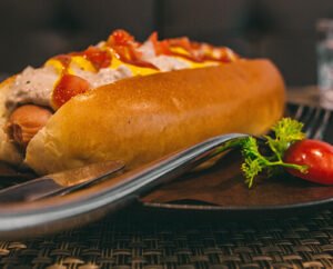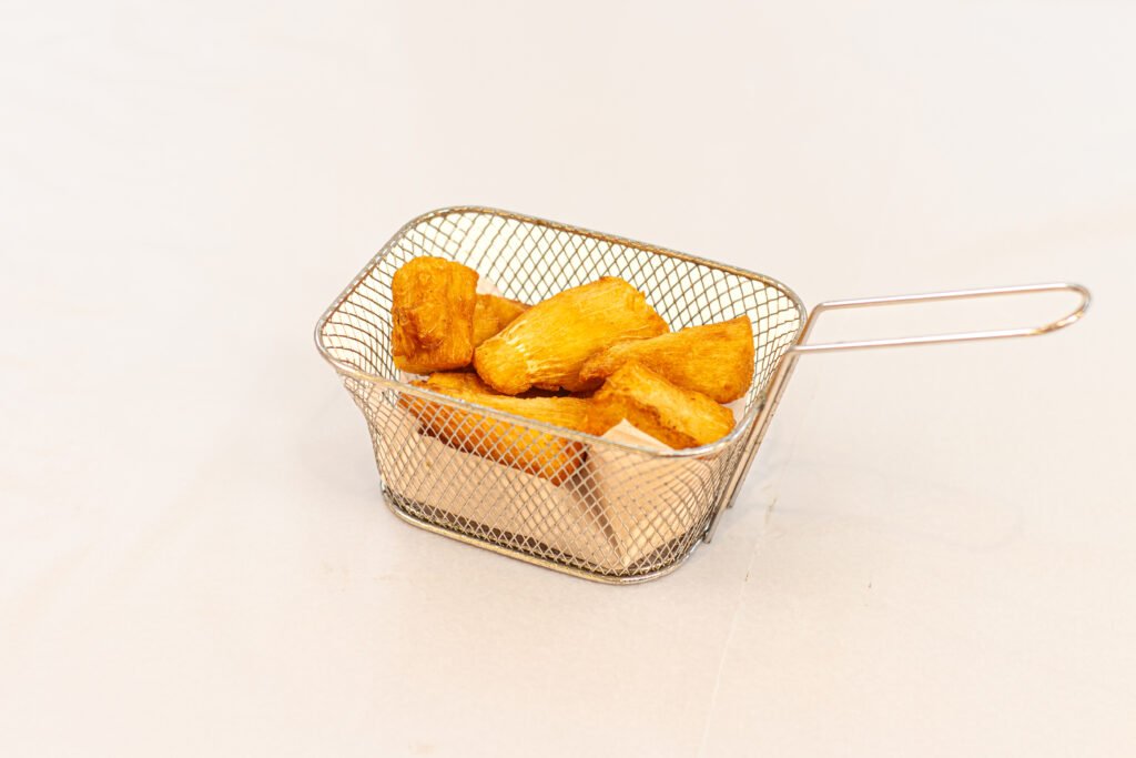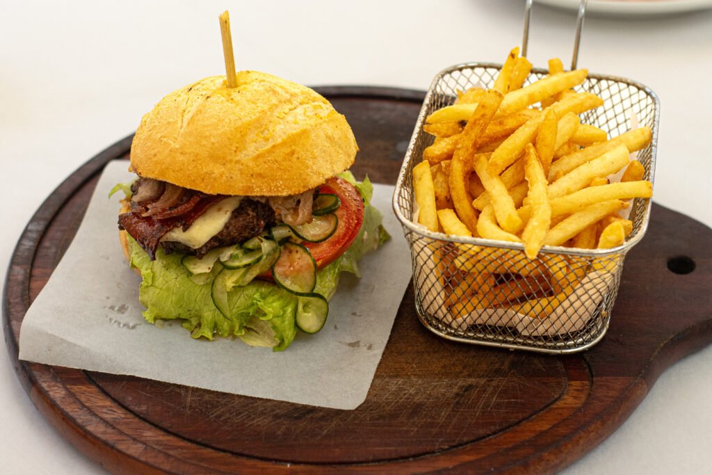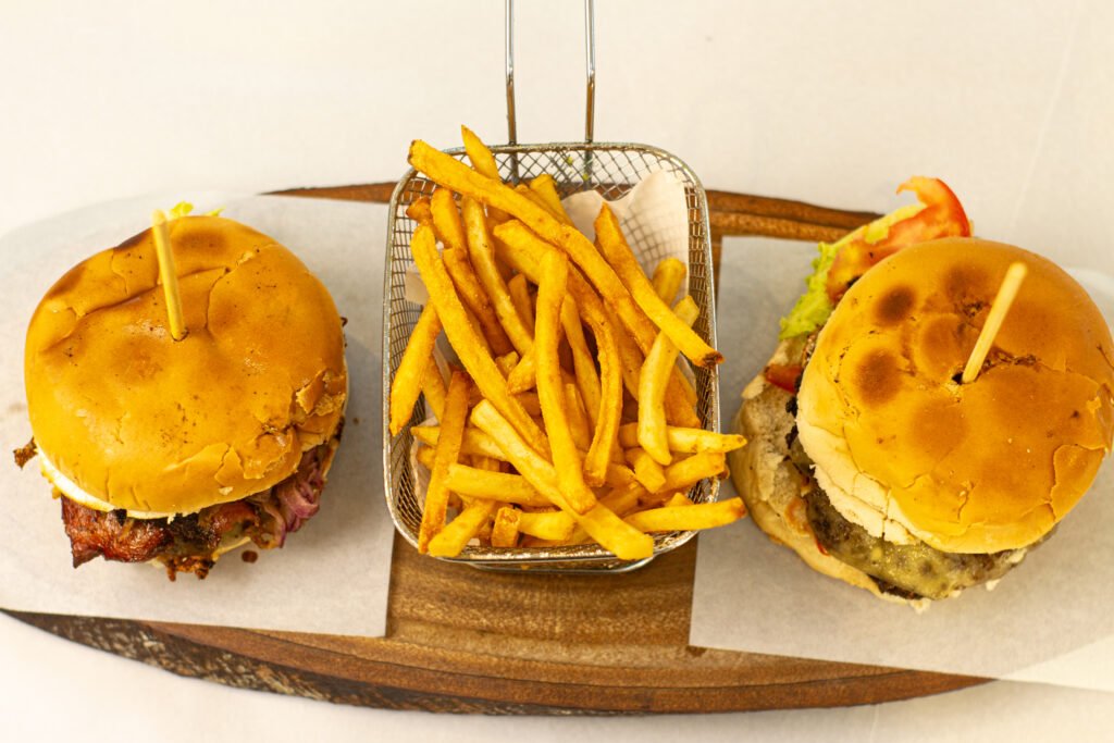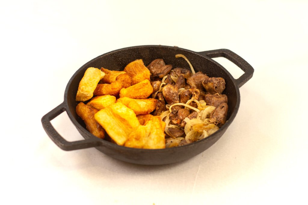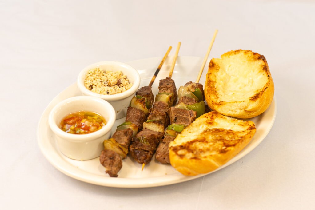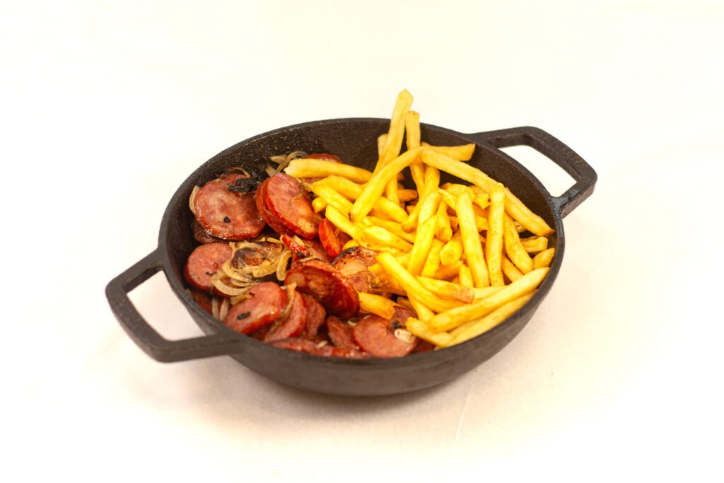 Acompanhamentos: Arroz, maionese, fritas, pão com alho, farofa e salada.
